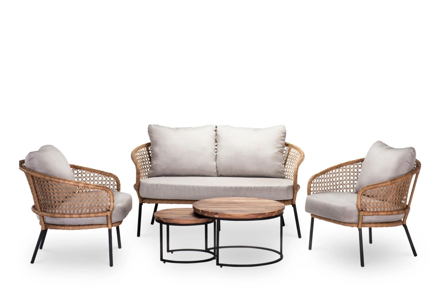 De Aurora loungeset bestaat uit een 2,5-zitsbank, 2 loungestoelen en twee koffietafels. De tafels zijn in verschillende hoogtes. Het blad is van hout met een zwart, aluminium frame. De bank en stoelen hebben een prachtig vlechtwerk in een walnoot bruine kleur. Met deze set haal je een landelijke stijl in je tuin.