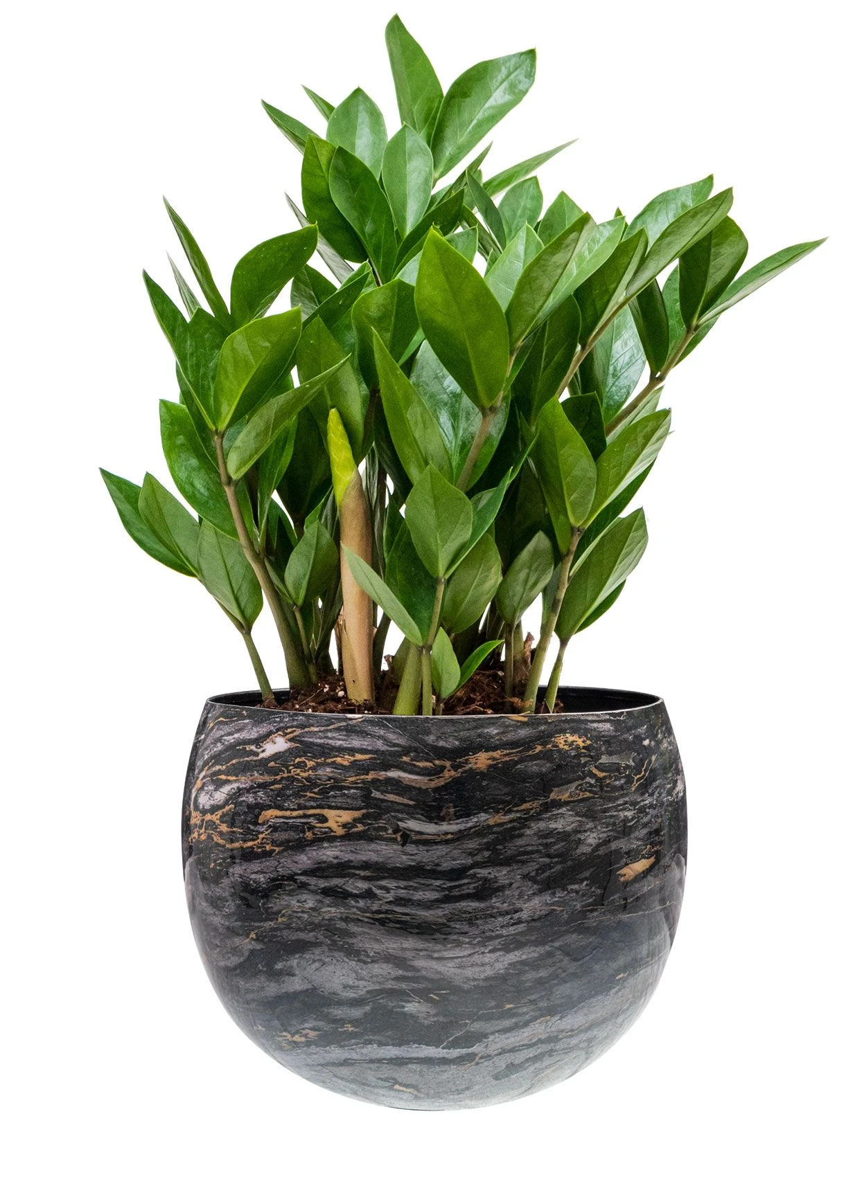 Het lijkt wel of deze bloempot James van marmer is gemaakt. De bloempot is van metaal waar een mooi lagje omheen zit. Je kunt de pot als bloempot gebruiken maar ook als vaas. Gebruik altijd een pot inlay om oxidatie van metaal te voorkomen.